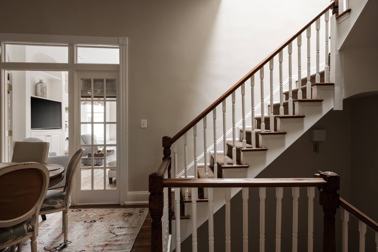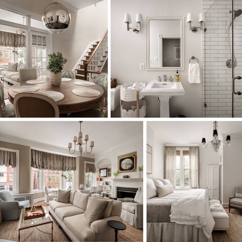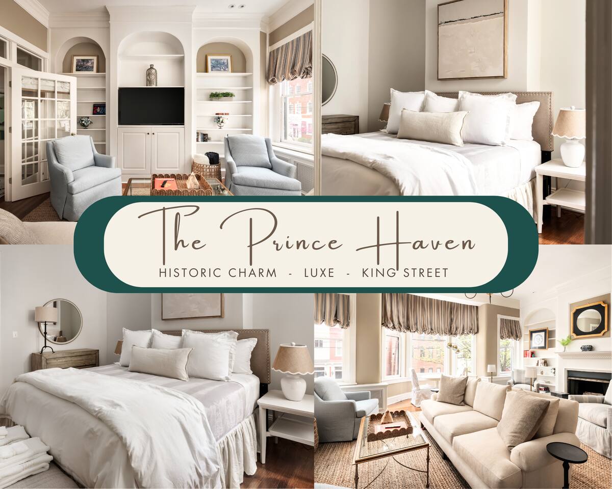 Discover The Prince Haven with us! Spanning three levels, this luxurious residence features: Relax and connect in this spacious 4-bedroom, 2-bath home designed for both comfort and togetherness. 🌟Primary Bedroom: King bed, ensuite bathroom. 🌟Second Bedroom: King bed, Smart TV, natural light. 🌟Third Bedroom: Queen bed. 🌟Fourth Bedroom: Two twin beds, dedicated workspace. 🌟Living Room: Samsung Smart TV, ample seating, decorative fireplace. 🌟Dining Area: Elegant dining table seats 6-8. 🌟3rd Floor Sitting Room: Cozy retreat with a Smart TV for winding down. Outdoor Space 🌟 Step out from the kitchen onto the cozy back deck—a serene spot for your morning coffee, evening drinks, or relaxed conversations. Amenities that our guests love: 🌟Prime Location: Just one block from historic King Street with boutique shopping, dining, and the FREE King Street Trolley. 🌟Convenient Travel: Situated less than half a mile from the metro and just steps away from the trolley stop, 8-minute Uber ride to Reagan National Airport (DCA) and convenient walkability to an array of dining options, shops, and popular attractions. 🌟High-Speed Internet & WiFi 🌟Fully Equipped Kitchen (Includes air fryer, Keurig & Drip Coffee Maker, dishwasher) 🌟Luxury Linens, Towels 🌟13 foot ceilings 🌟Room darkening shades 🌟Dedicated Workspace 🌟Seamless check-in and access Parking Made Easy 🌟Two FREE Spaces Behind House Available: Restricted to Friday - Sunday only. 🌟Two FREE OFF Premise Spaces Available 24/7: two min walk to lot 🌟Street Parking Options: Nearby streets offer free and metered parking. 🌟Additional Paid Parking: Located just a short walk away. Nearby Attractions 🌟Washington, D.C.: Only 10-15 minutes by car or Metro. 🌟Mount Vernon Trail: A 5-minute walk to the waterfront with scenic walking and biking paths. 🌟Del Ray, Alexandria: Just a 10-minute drive. 🌟Local Highlights: Birchmere Music Venue, Smithsonian Museums, Torpedo Factory Art Center, George Washington’s Mount Vernon. Sustainability Commitment 🌟Enjoy a clean, eco-friendly stay! We use naturally derived, plant-based Thieves products infused with essential oils.