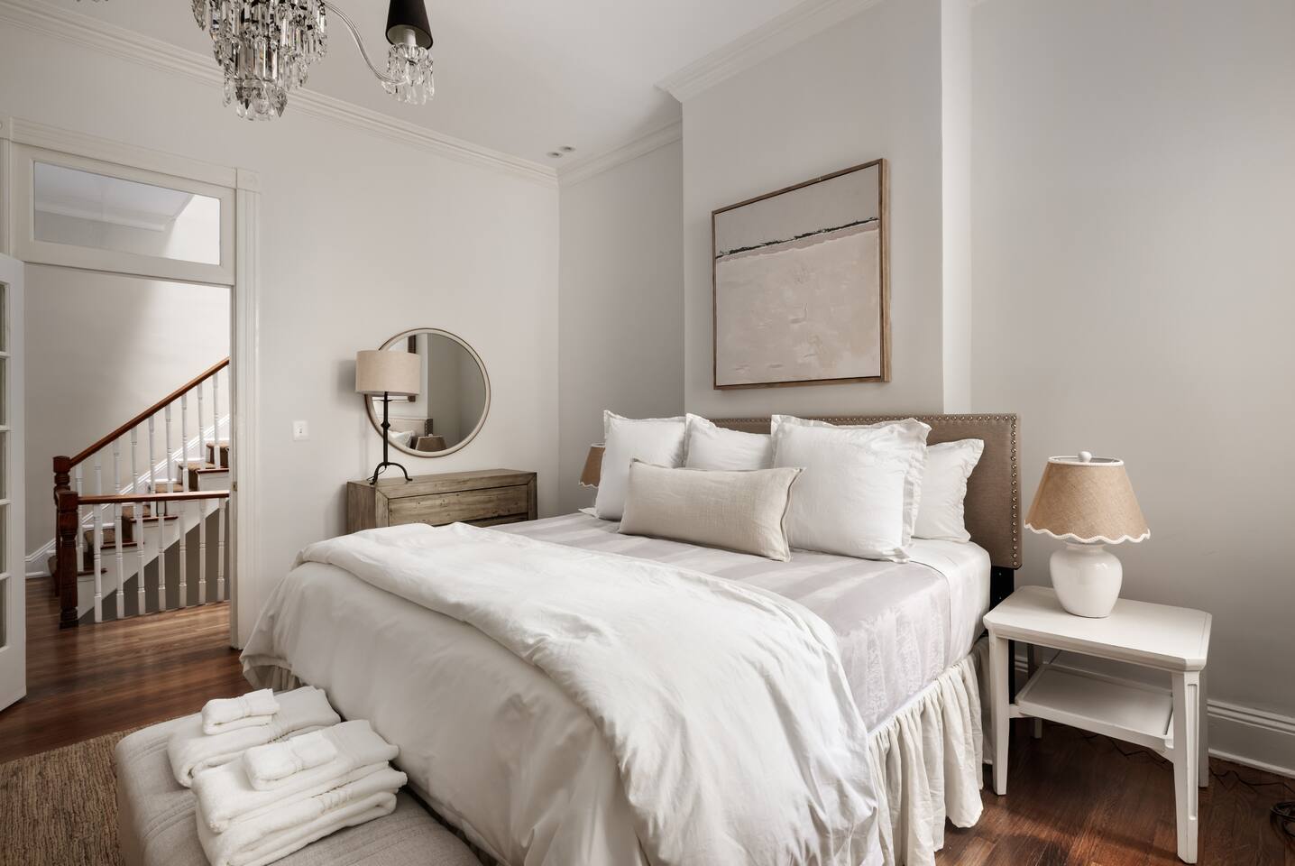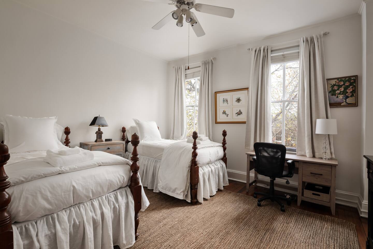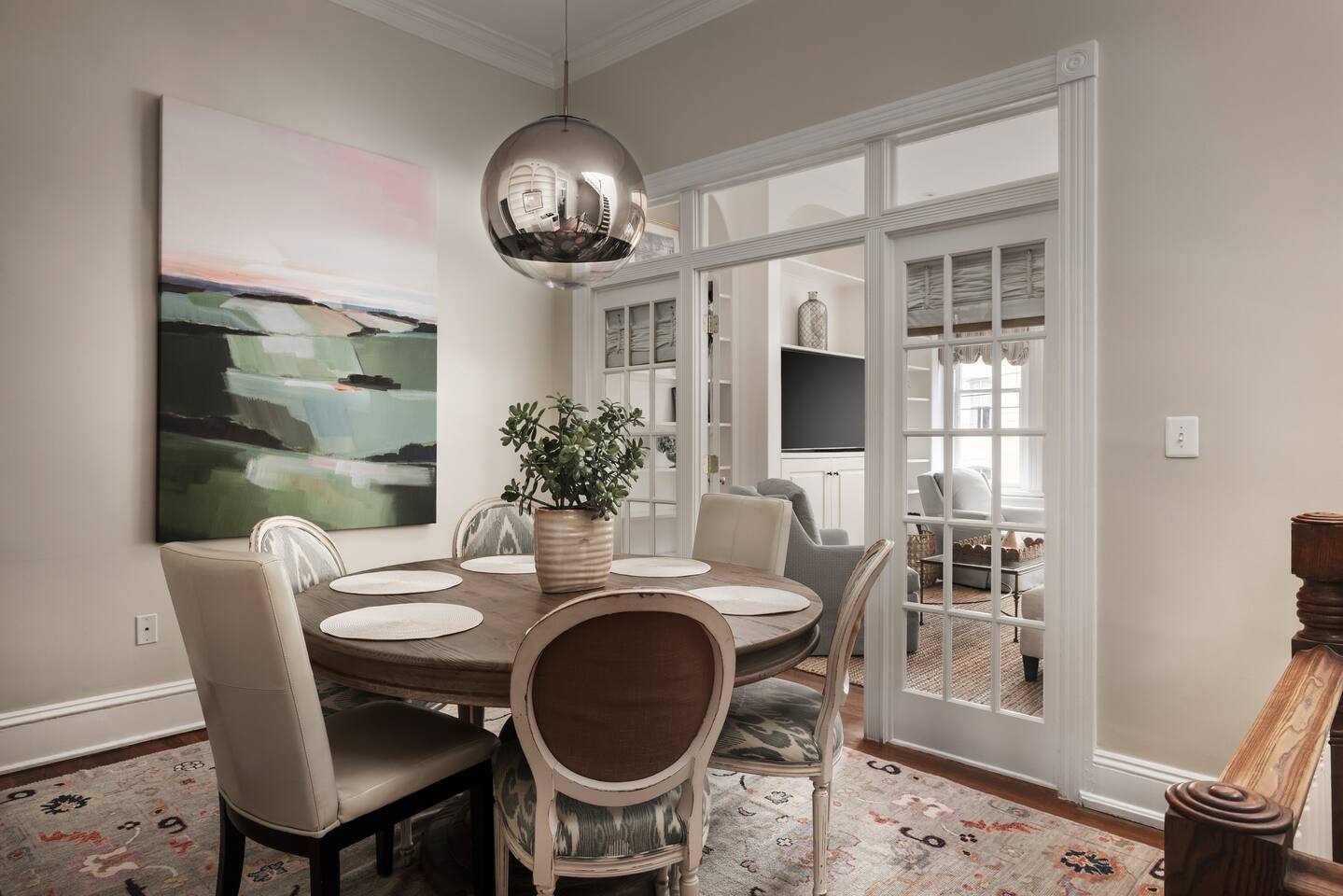 Discover The Prince Haven with us! Spanning three levels, this luxurious residence features: Relax and connect in this spacious 4-bedroom, 2-bath home designed for both comfort and togetherness. 🌟Primary Bedroom: King bed, ensuite bathroom. 🌟Second Bedroom: King bed, Smart TV, natural light. 🌟Third Bedroom: Queen bed. 🌟Fourth Bedroom: Two twin beds, dedicated workspace. 🌟Living Room: Samsung Smart TV, ample seating, decorative fireplace. 🌟Dining Area: Elegant dining table seats 6-8. 🌟3rd Floor Sitting Room: Cozy retreat with a Smart TV for winding down. Outdoor Space 🌟 Step out from the kitchen onto the cozy back deck—a serene spot for your morning coffee, evening drinks, or relaxed conversations. Amenities that our guests love: 🌟Prime Location: Just one block from historic King Street with boutique shopping, dining, and the FREE King Street Trolley. 🌟Convenient Travel: Situated less than half a mile from the metro and just steps away from the trolley stop, 8-minute Uber ride to Reagan National Airport (DCA) and convenient walkability to an array of dining options, shops, and popular attractions. 🌟High-Speed Internet & WiFi 🌟Fully Equipped Kitchen (Includes air fryer, Keurig & Drip Coffee Maker, dishwasher) 🌟Luxury Linens, Towels 🌟13 foot ceilings 🌟Room darkening shades 🌟Dedicated Workspace 🌟Seamless check-in and access Parking Made Easy 🌟Two FREE Spaces Behind House Available: Restricted to Friday - Sunday only. 🌟Two FREE OFF Premise Spaces Available 24/7: two min walk to lot 🌟Street Parking Options: Nearby streets offer free and metered parking. 🌟Additional Paid Parking: Located just a short walk away. Nearby Attractions 🌟Washington, D.C.: Only 10-15 minutes by car or Metro. 🌟Mount Vernon Trail: A 5-minute walk to the waterfront with scenic walking and biking paths. 🌟Del Ray, Alexandria: Just a 10-minute drive. 🌟Local Highlights: Birchmere Music Venue, Smithsonian Museums, Torpedo Factory Art Center, George Washington’s Mount Vernon. Sustainability Commitment 🌟Enjoy a clean, eco-friendly stay! We use naturally derived, plant-based Thieves products infused with essential oils.